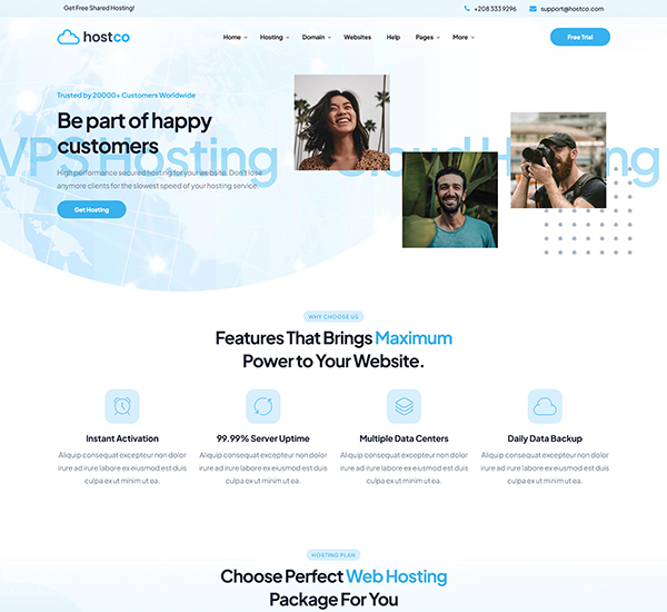 Hostco is an exclusive theme specially made for Hosting with modern and professional design. Made using only the finest coding and design practices by an experienced ThemeForest author with over 10 years of experience. Hostco has stunning styles and elements to help you make a professional website in no time. Get Hostco now.